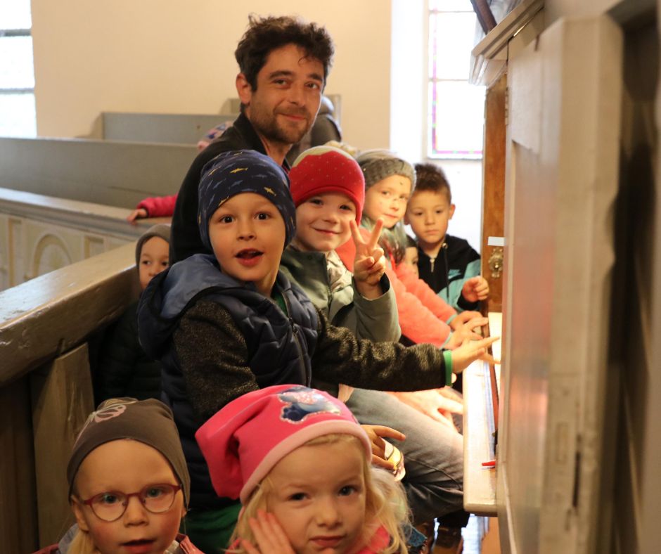 In der Kirche von Bellingen erlebten die Kinder der Kita „Haus der kleinen Racker“ ein besonderes Erntedankfest: Musiker Thomas Kübler stellte ihnen die Königin der Instrumente vor – die Orgel. Mit bekannten Liedern, Klangexperimenten und kleinen musikalischen Wundern brachte er die Kirche zum Klingen. Am 23. November kehrt er mit seinem Konzert „Mein Herz schlägt Heimat“ zurück.